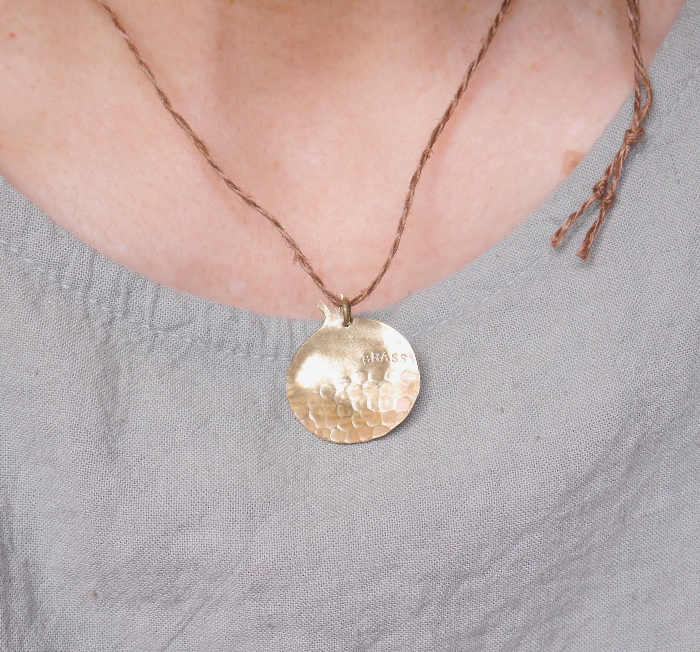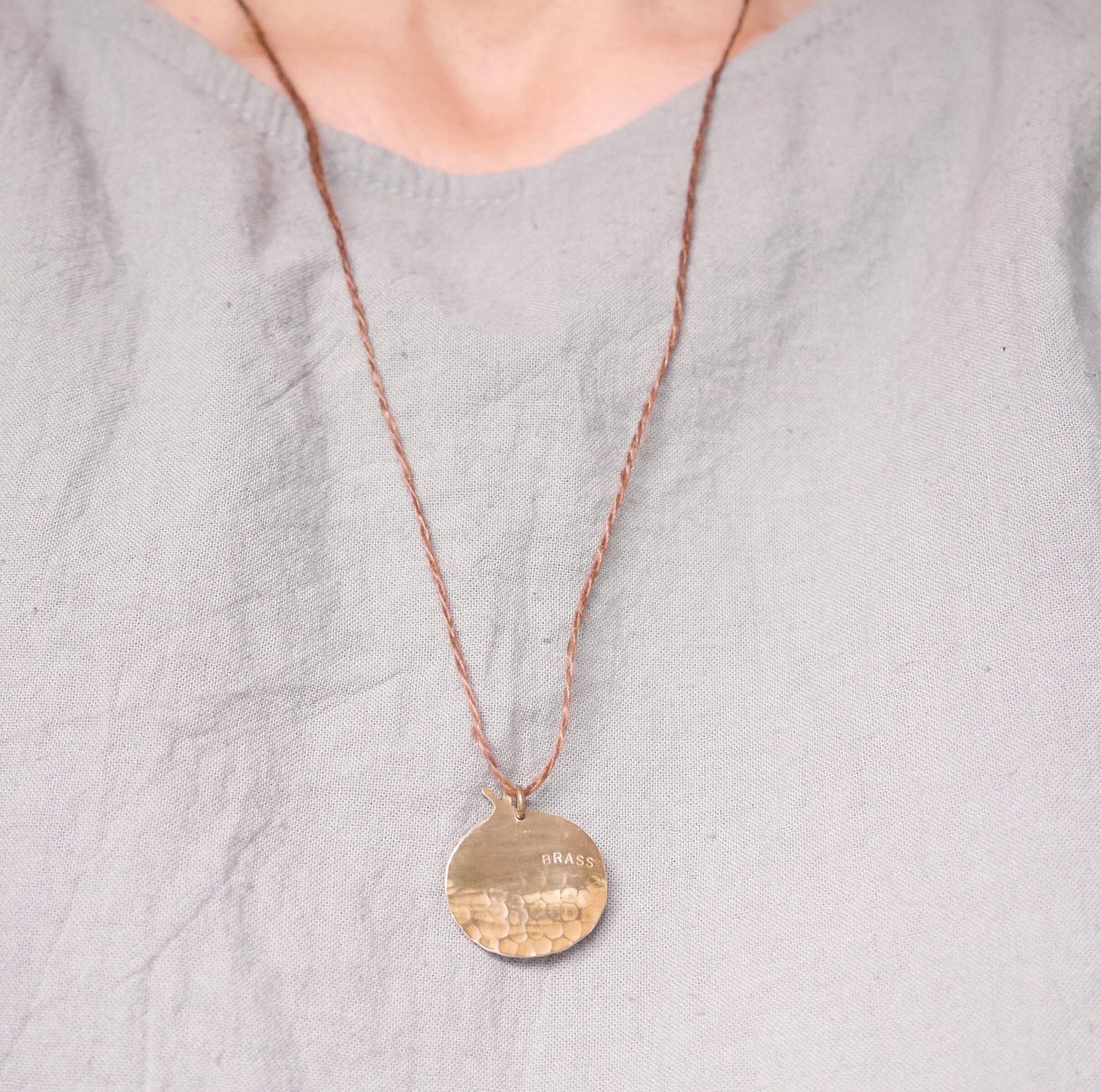 BRASS 栗坊主光沢バージョン リネン紐ペンダント(紐色 茶色)現品1点限定